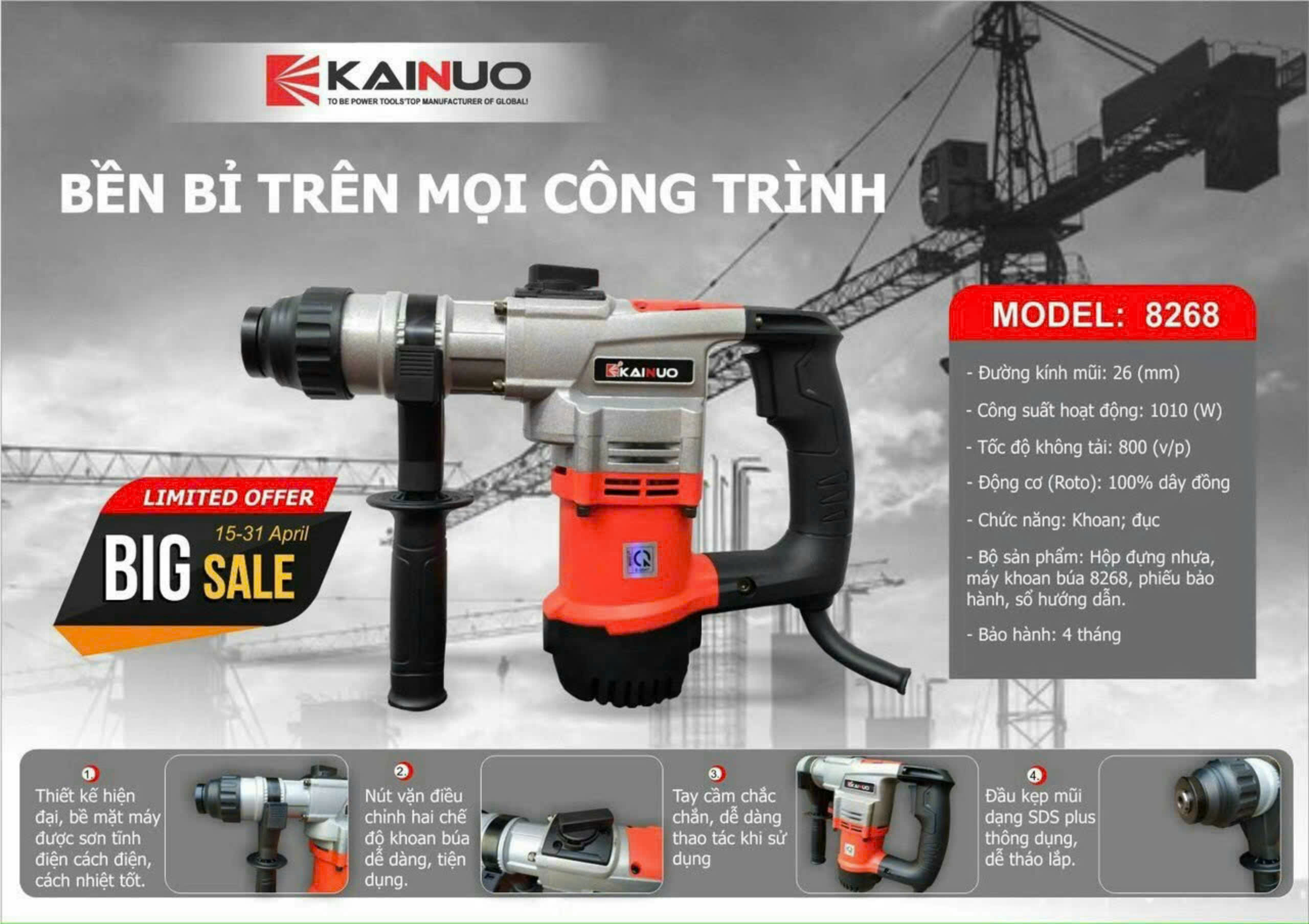 - Phụ kiện đi kèm: Tay cầm, dây đeo, lưỡi cắt kim loại, vành chắn bảo vệ, túi dụng cụ
