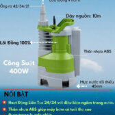 Máy bơm chìm hoạt động với công suất 400W, đi kèm 1 ống xả nước có kích thước 42mm, 34mm, 21mm.