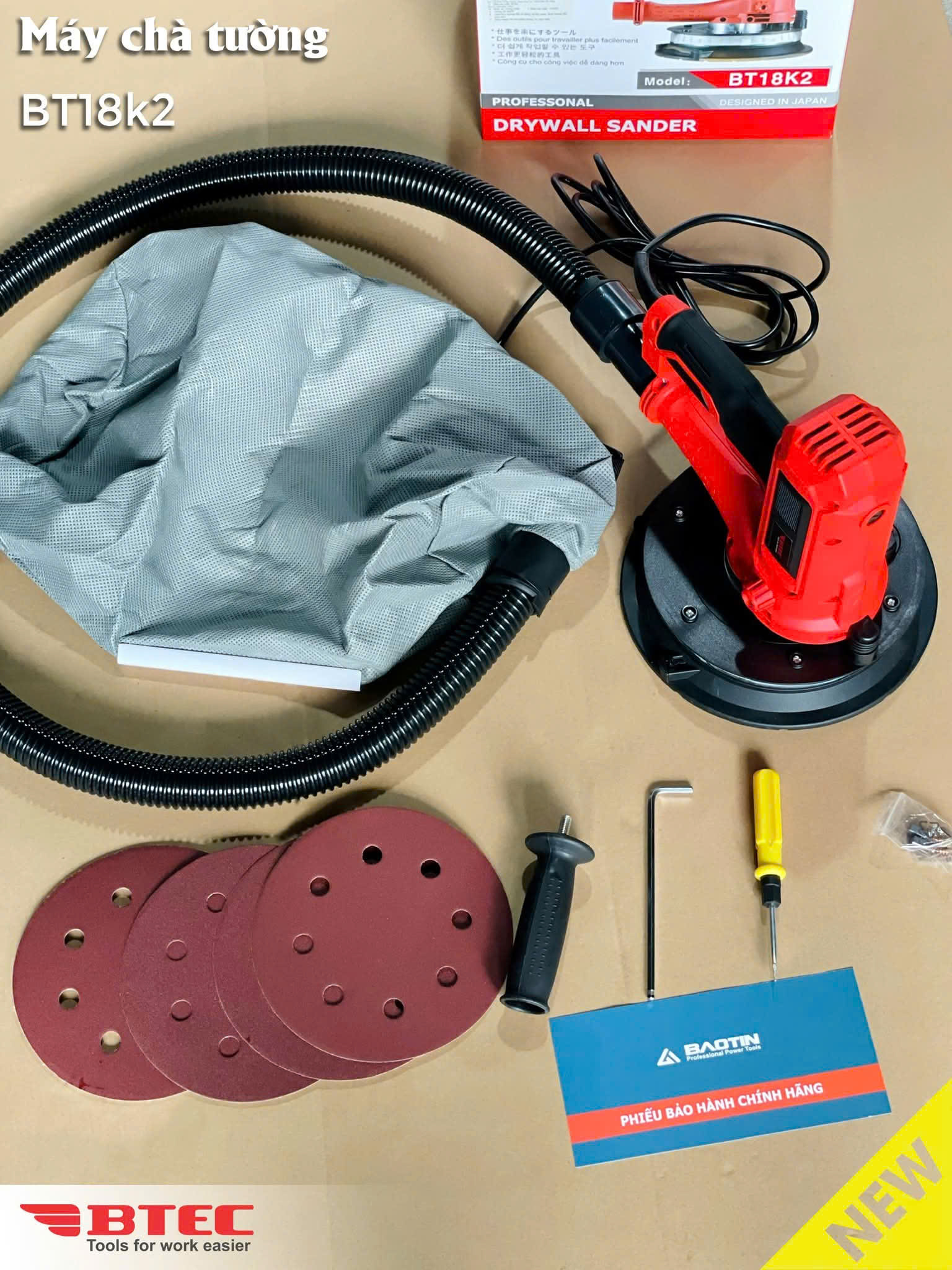 Máy chà tường BTEC BT18K2 được sử dụng hiệu quả trong công việc làm nhẵn bề mặt tường trước khi sơn. Đây là loại máy đi kèm sẵn túi đựng bụi, ống thu bụi nhằm đảm bảo máy chà đến đâu, bụi sẽ được thu lại đến đó. Không gây ảnh hưởng tới người sử dụng và không gây bụi ra môi trường xunh quanh.