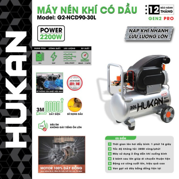 MÁY NÉN KHÍ CÓ DẦU GEN2 PRO – Máy nén khí G2-NCD90-30L là thiết bị khí nén chất lượng cao, đáp ứng nhu cầu sử dụng trong nhiều lĩnh vực.