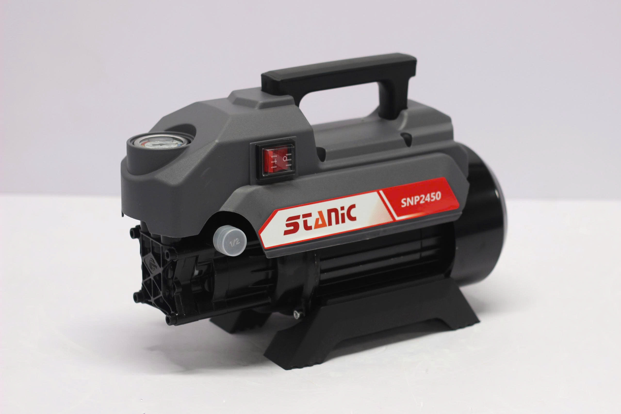 Máy xịt rửa xe Stanic SNP2450 thiết kế gọn nhẹ, motor dây đồng bền bỉ, áp lực mạnh mẽ. Giải pháp làm sạch hiệu quả cho gia đình, cửa hàng và nhu cầu vệ sinh ngoài trời.